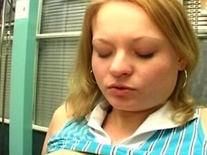 Helt naturlig passform blondin Ally Kay blåser sin fan
