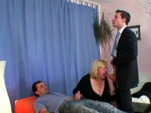 MMF trekant med en vacker fransk MILF i strumpor. Vackra franska MILF kommer klädd i en svart klänning med strumpor och tar två kuk för en dubbel avsugning i en MMF trekant