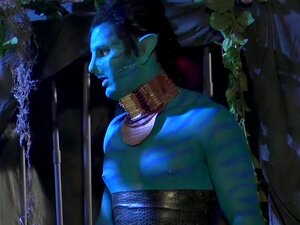 Avsugning från två blå avatarer. Lyckliga killar får ultimat avsugning från två blå avatarer
