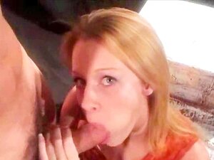 Het passagerare bankad av bedrägeriförare för att vara till hjälp. Vacker blond passagerare ger sexuell belöning för hjälpsam förare genom att suga av hans kuk och blir påsatt i baksätet