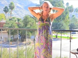 Äldre blond kvinna, Lady Sonia, går runt naken, eftersom det känns så jävla bra